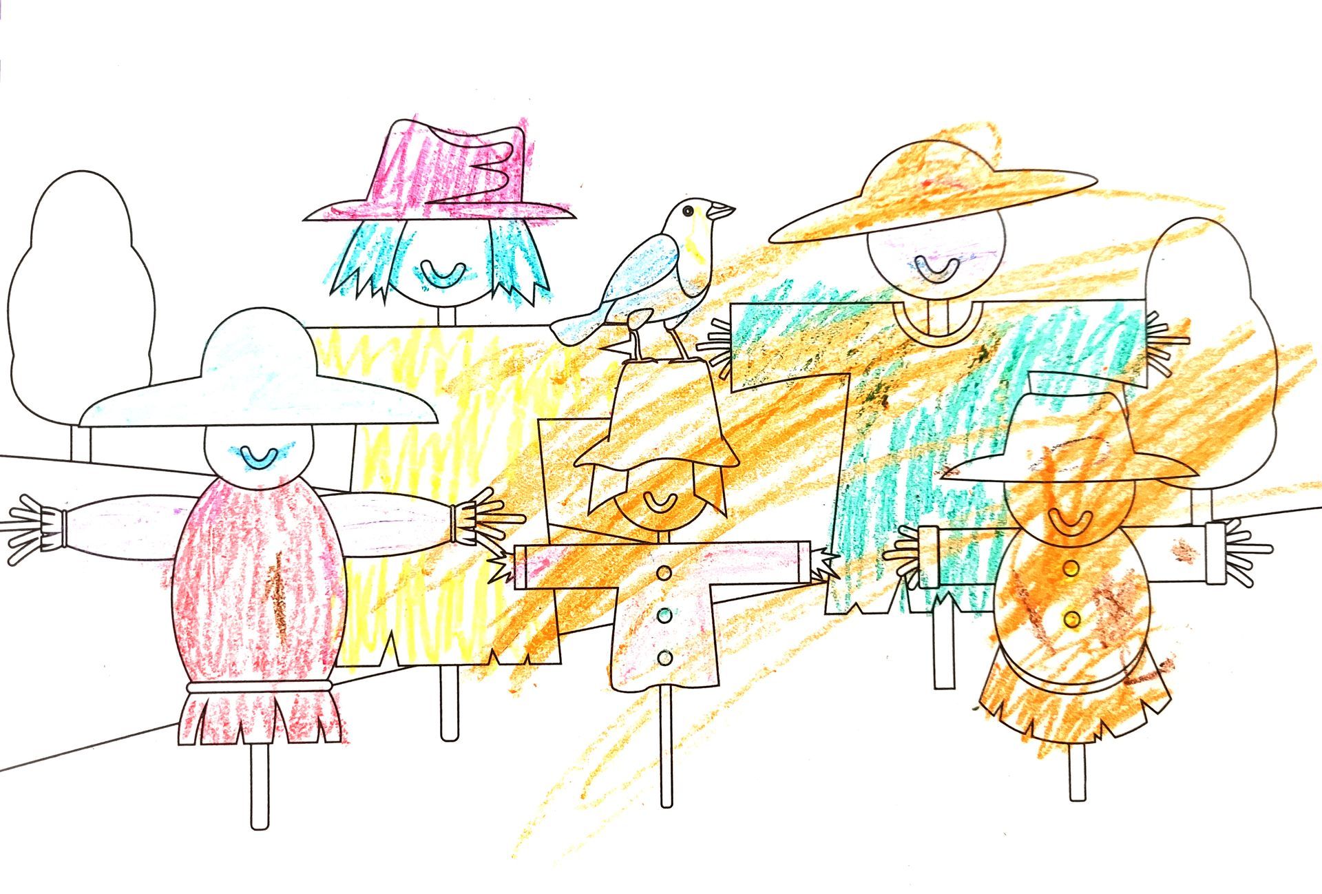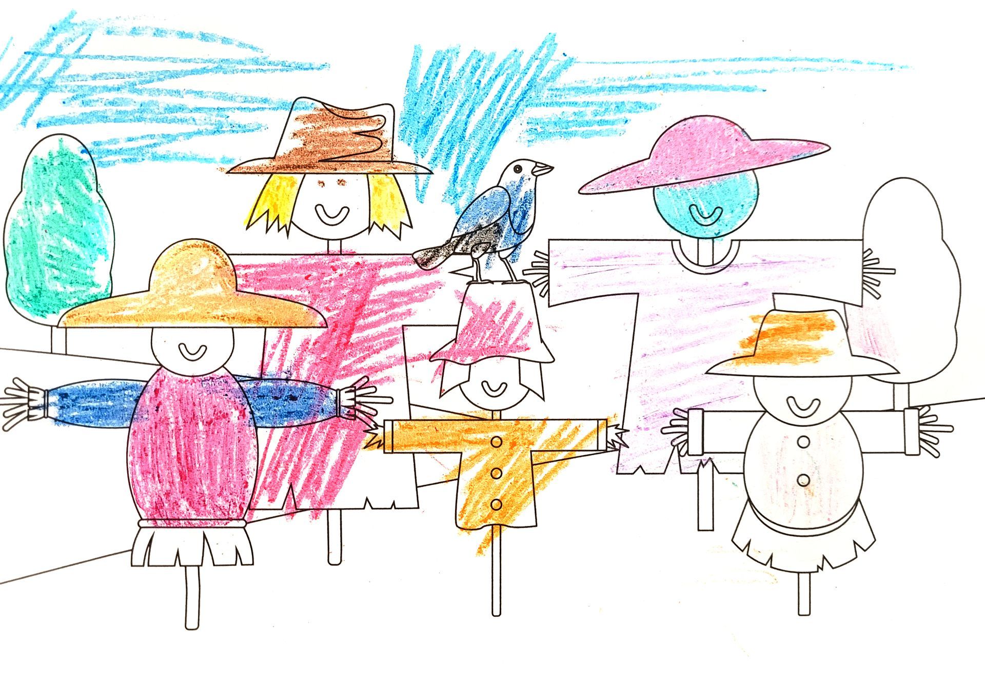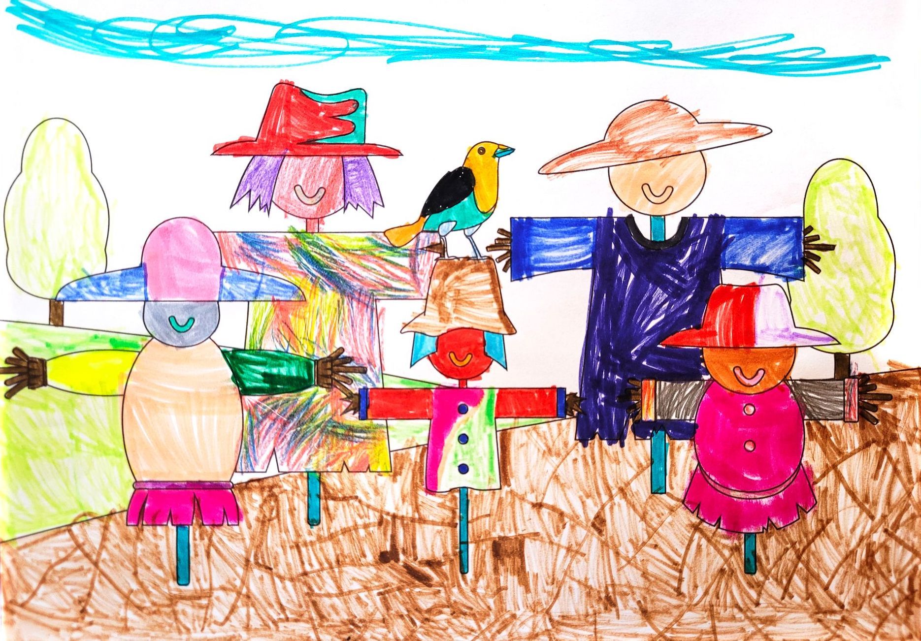 If you have access to a scanner or can take a photo of the completed artwork, we would be thrilled to feature it on our website. To ensure privacy and protection, we will only use the child's first name, the first initial of their last name, and their age. We are also excited to showcase local children's scarecrow-themed artwork related to the festival, so please submit freestyle pieces as well.